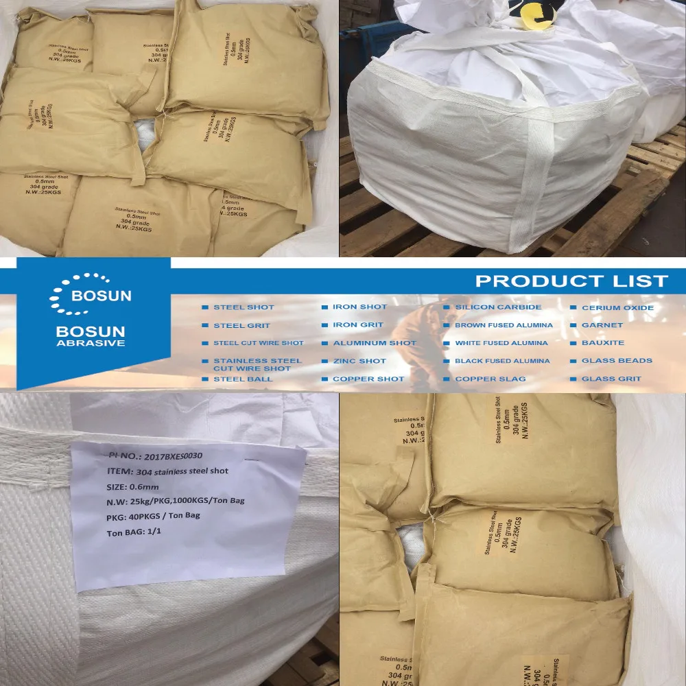 Shanghai Bosun Abrasive Co., Ltd. Является профессиональной абразивной компанией, которая может исследовать, производить и продавать все виды абразивных материалов. Основная продукция включает в себя все виды бумаговые мешки для упаковки чая, стальная стружка, гранулированное проволочное включение, шарики из нержавеющей стали, алюминий, шары, цинк, шары, Медные шарики так же, как медный песка, коричневый корунд, черный корунд и так далее. Компания имеет Передовое оборудование и технологии, сильную прочность технологии и идеальные методы контроля качества. Продукты строго производятся и тестируются в соответствии с относительным стандартом, поэтому мы доверяем нашим клиентам и выбираем в качестве продукта многими компаниями, которые производят оборудование для пескоструйной обработки.
