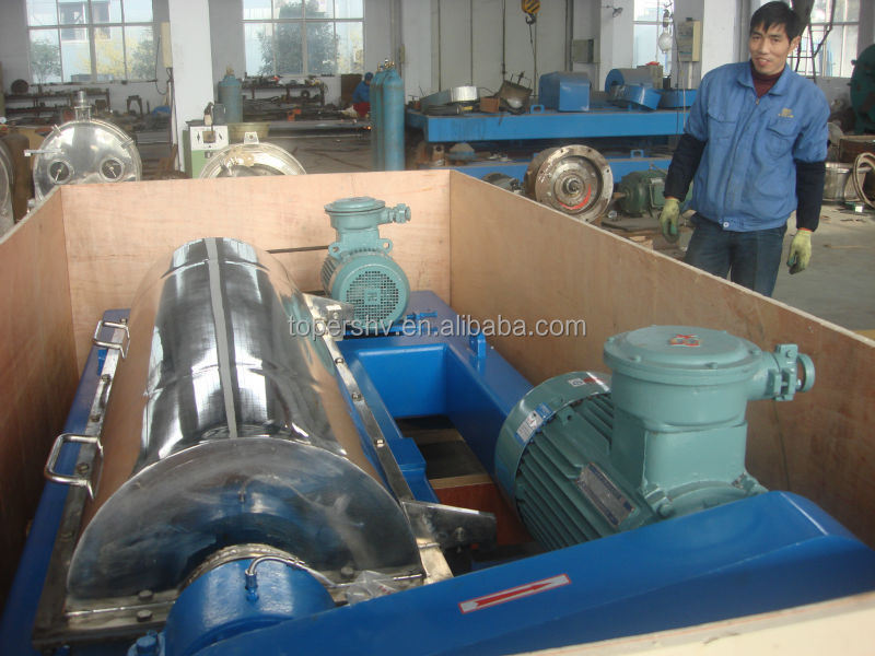 Decanter centrifuge uses the centrifugal sedimentation to separate the suspension, uses the spiral to unloading material.It is continuously charging, separating, discharging at full speed.It is used in the suspension(in 0.0005~2mm, concentration 2-40%) solid-and-liquid separation, size classification, liquid clarification .Especially ,it issuitable for the suspension separation that with difficult in filter cloth recycling, and the material with large concentration and big size range.