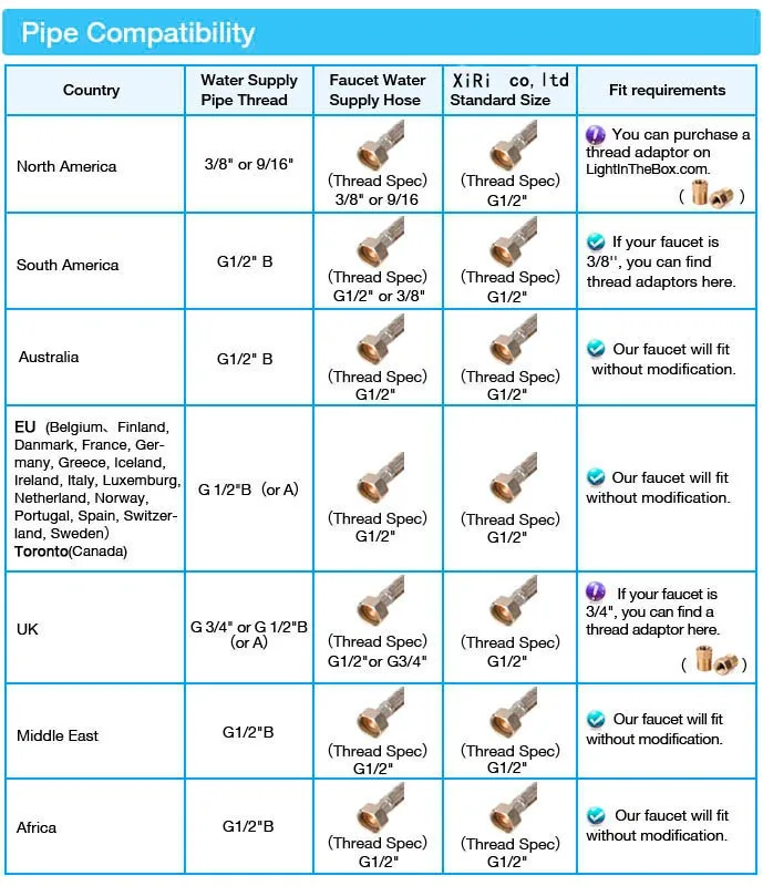 Flexible Hose Size | 1/2", 3/8" or 9/16" | Faucet Type | Cold And Hot Tap | ||