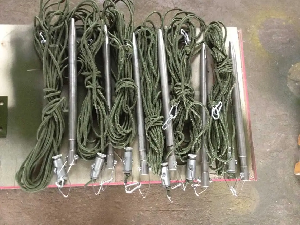 Material | Main Pole: aluminum alloy Bottom base and accessories(except the stakes): iron steel Pulling cord: stainless steel wire(OD:2mm) | |