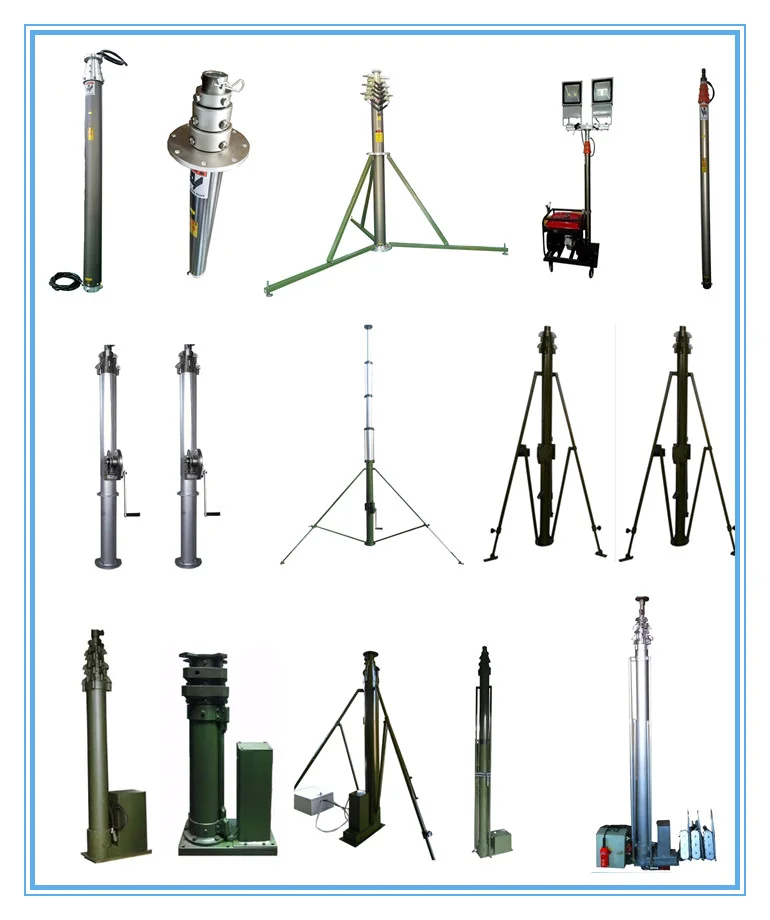 we produce telescopic mast manual lifting from 2m to 45m,for payload lights,camear,ham radio,yagi ,lightning rod,or telecommunication devices.Bellow is our catalogue of usual models for your reference.