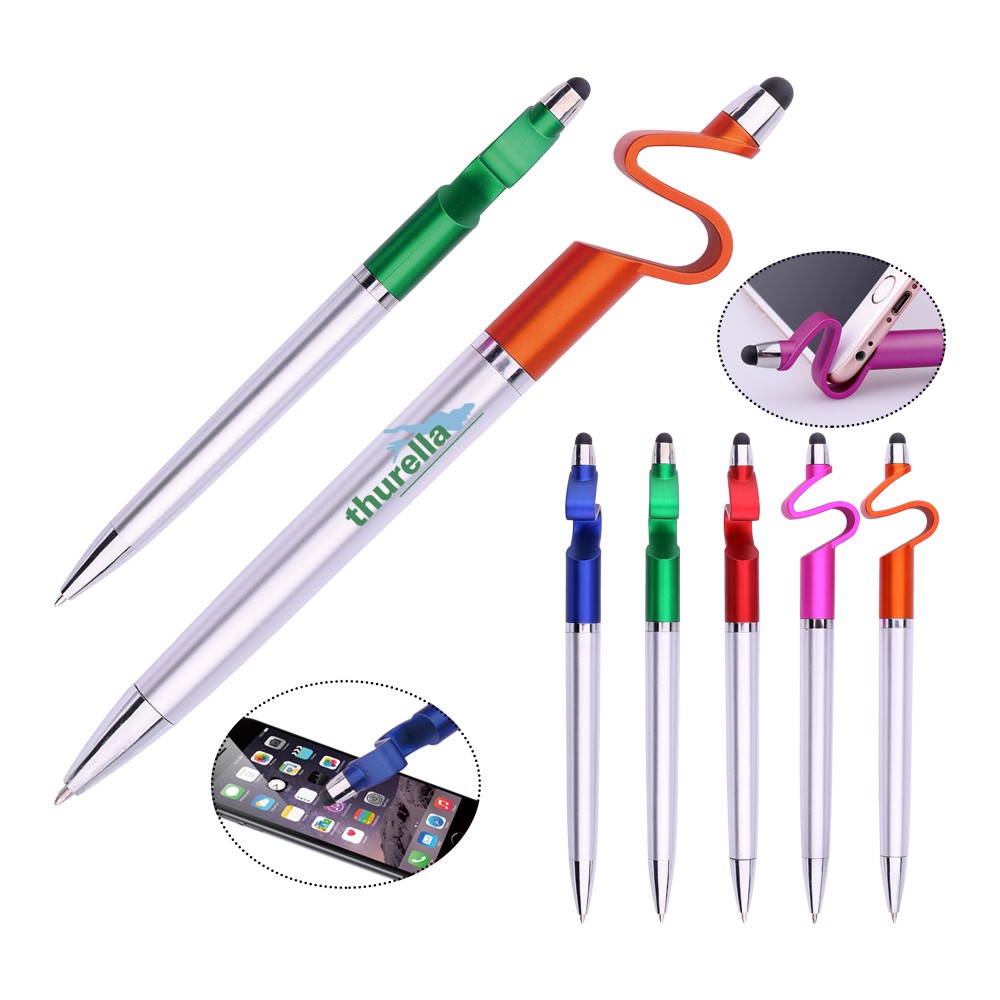 Hot Sale Creative Design Good Quality Promotional Plastic Stylus Pen Custom Logo Pen With Phone Holder