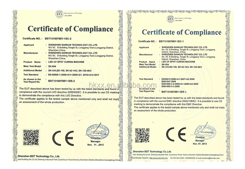 LED UV CURING Machine Certificate: