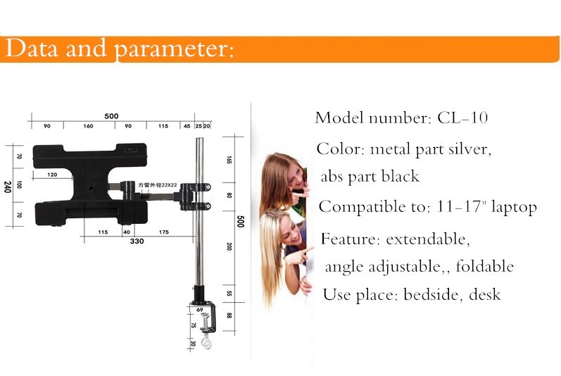 Desk clamp type portable laptop stand holder for bed, desk, office