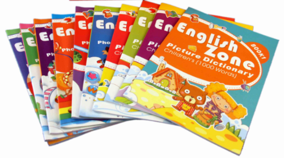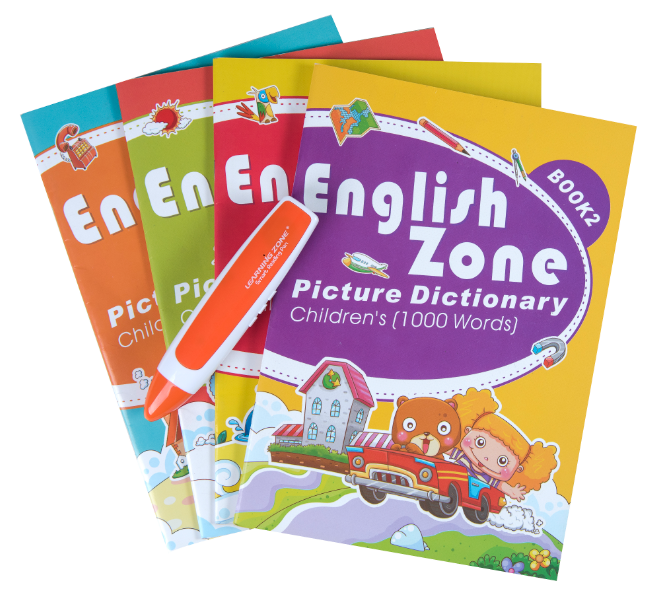 And we have four to ten English Zone books with our learning pen. English Zone is about English words with corresponding pictures, so that kids can learn English step by step.