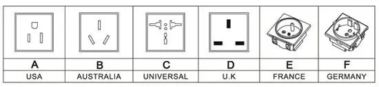 110 В/120 В/220 В/230 В/240 В переменного тока |