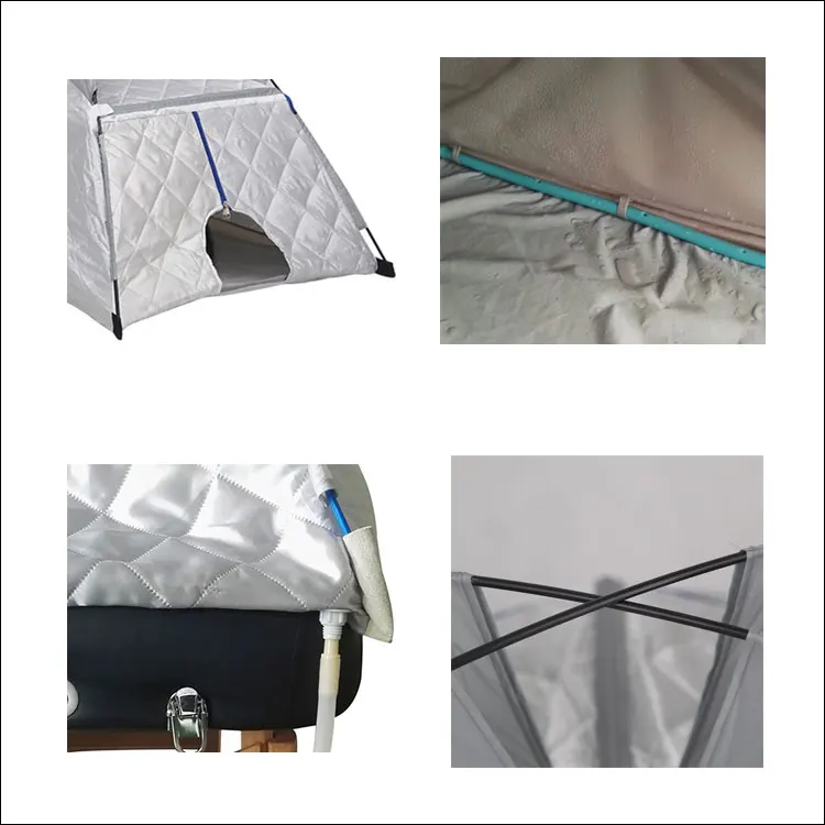1) U.S.A., German Approved Quality Spa 2) Fiber glass pole supporting Lying sauna design 3) Sauna cabin Made of nylon with cotton 4) Suitable for Home Spa or beauty salon 5) Certificates: CE, ROHS, REACH, SASO, EAC,FCC