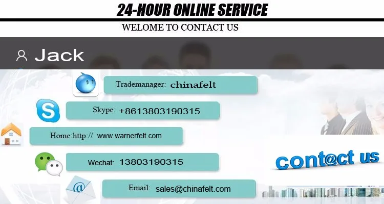 NanGong Warner Felt Co.,Ltd, является текстильным, кожаным бизнесом, одобрено соответствующими госотделами, зарегистрированными основными налоговыми компаниями. Основная продукция: ковры из синтетического волокна, нетканые материалы, одеяла, смешанные ковры, цветной шерстяной войлок из синтетического волокна, фетровые изделия, такие как сотни предметов, более 18000 спецификаций. Сильная техническая сила, первоклассное оборудование, сложное оборудование для тестирования продукции, литое качество продукции и производственная мощность более, продукты достигли внутреннего и международного сложного уровня продукции. В настоящее время в той же отрасли в стране одеяла Warner с точки зрения размеров, оборудования, производства, категории продукции, послепродажного обслуживания и других показателей имеют высокое качество. Nangong Warner одеяла завод в "клиент во-первых, честность во-первых" принцип, с рядом предприятий установить долгосрочные отношения сотрудничества. После многих лет развития, мы строили очень хорошие отношения с нашими клиентами по всему миру.