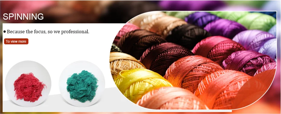 R & D и производство неокрашенных переработанных полиэфирных волокон является основным бизнесом компании, это серийная продукция из переработанного высококачественного цветного полиэфирного ШТАПЕЛЯ, производящаяся с использованием многокомпонентных отходов полиэфирного текстильного пеноматериала для сырья, с широкой спецификацией: волокна размером 1.55-144dtex, прочность 2,8-5. 8cN/dtex и цветовая система всего спектра. Продукты могут быть широко использованы в инженерных нетканых материалов, строительных коврах, экологически чистых отделочных материалов, которые изолируют звук и поглощают шум, Внутренние материалы орнаментов в моторах и высокоскоростных поездах, специальные функциональные Составные Волокна и ткани для одежды высокого класса и так далее.