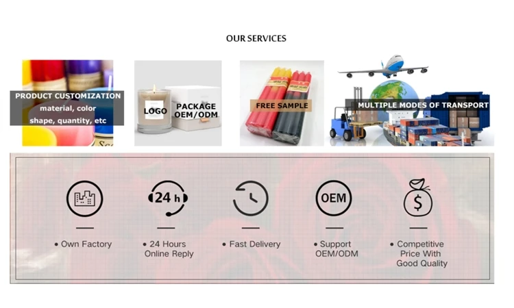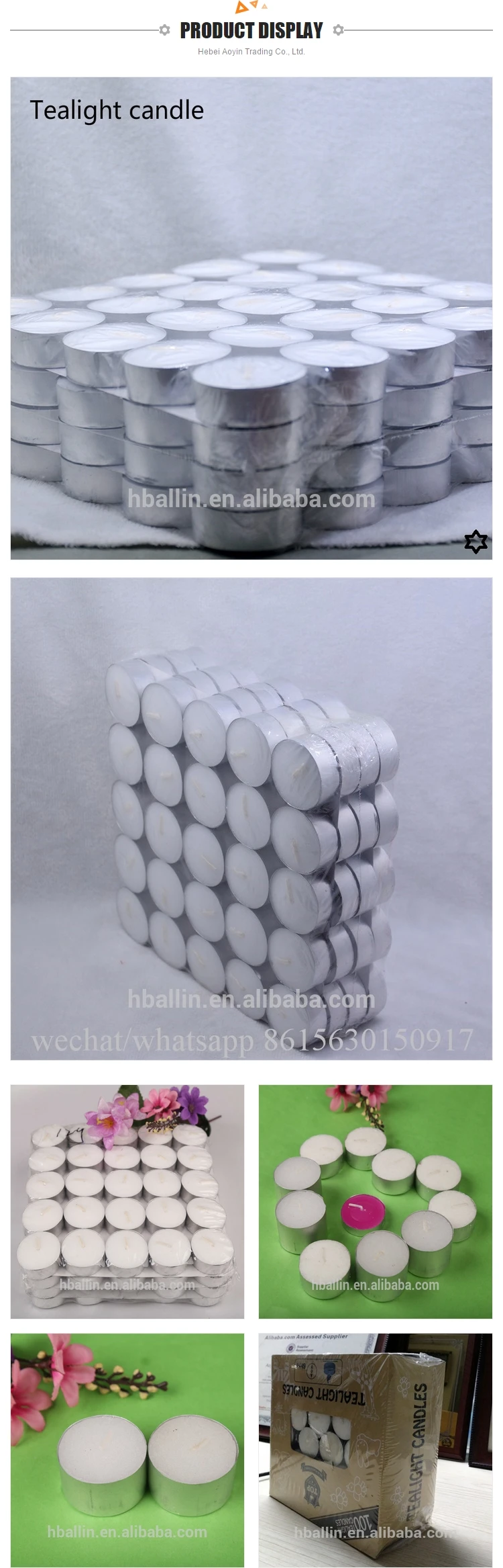 Добро пожаловать в AoYin, Хэбэй AoYin Trading Co.,Ltd. Основанная в 2005 году, является полностью принадлежащим частному предприятию. Филиал Aoyin Xingtang Candle Co.,Ltd является основным продуктом свечей, мы находимся в Shijiazhuang, провинция Хэбэй с удобным доступом к транспортировке. Благодаря строгому контролю качества и продуманному обслуживанию клиентов наши опытные сотрудники всегда готовы обсудить ваши требования и обеспечить полное удовлетворение потребностей клиентов. В последние годы Наша компания ввела серию передового оборудования, включая машину для производства белых свечей и машину для производства чайных свечей. Кроме того, мы получили сертификаты SGS и VB. Хорошо продается во всех городах и провинциях Китая, наша продукция также экспортируется клиентам в таких странах и регионах, как Африка, Америка, Европа, Юго-Восточная Азия, Ближний Восток. Мы также приветствуем заказы OEM и ODM. Наша компания имеет собственную лицензию на импорт и экспорт. Завод занимает площадь 10 000 квадратных метров, 300 сотрудников. Отдел исследований и разработок продолжает делать технические улучшения, новые продукты, новые дизайны, новые модели. В качестве производства свечей мы производим OEM в соответствии с заказом клиентов в течение многих лет. Наша основная продукция включает в себя: белые свечи, Чайные свечи, спиральные свечи, художественные свечи, светодиодные свечи, свечи-столбы, стеклянные свечи серии. Рабочие ручной работы строгие, качество абсолютно надежное. Текущая ежемесячная производственная мощность составляет 100X20 футов контейнеров. С стабильной производительностью, комфортным обслуживанием, мы хотели бы получить более благоприятный комментарий с замечательным качеством и вечным доверием. Мы приветствуем всех наших клиентов.