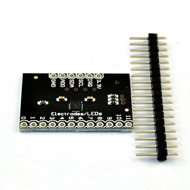 Это breakout board для Freescale's MPR121QR2. MPR121-это емкостный сенсорный контроллер, управляемый интерфейсом I2C. Чип может управлять до двенадцати отдельными электродами, а также имитацией тринадцатого электрода. MPR121 также имеет восемь светодиодных штифтов для вождения. Когда эти контакты не настроены как электроды, они могут использоваться для привода светодиодов.
