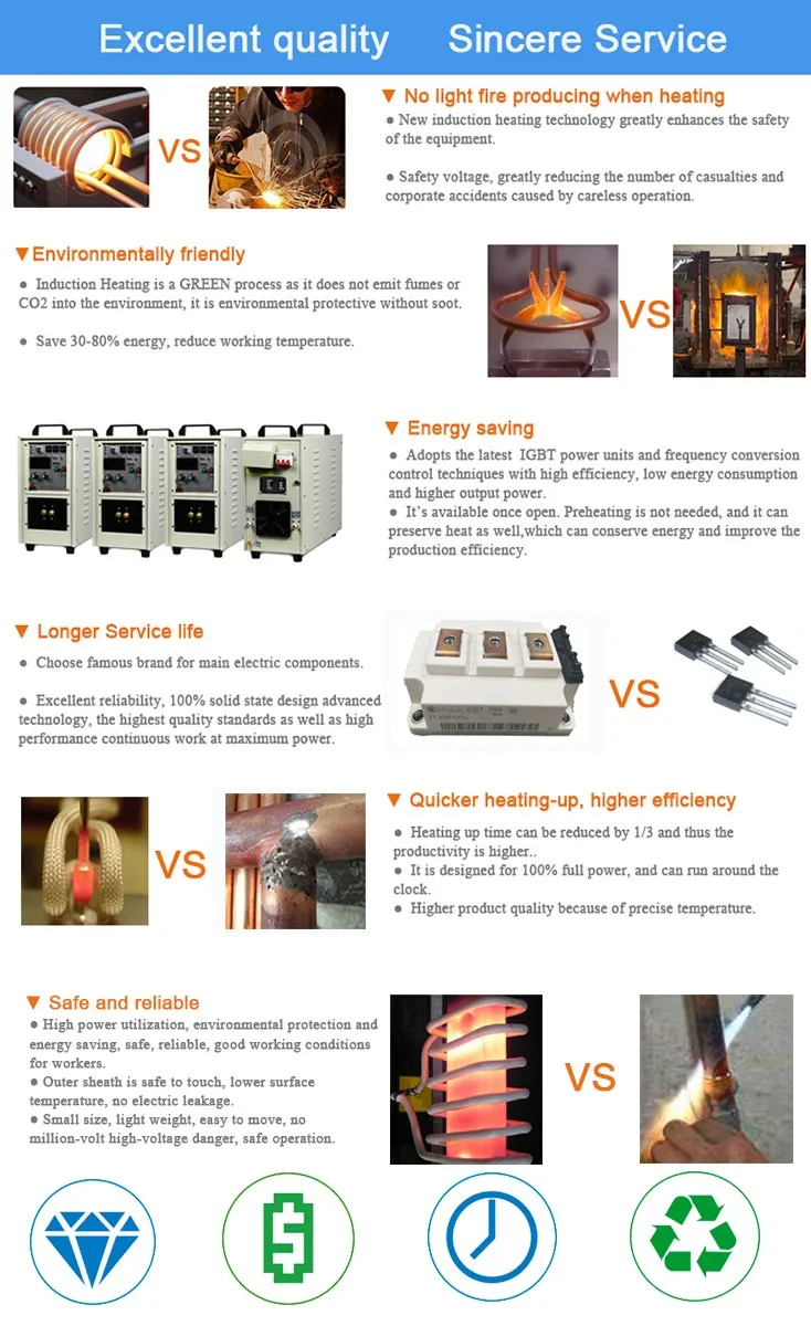 1.It adopts the most advanced MOS, IGBT frequency conversion control technologies to realize automatic tracking of frequency.