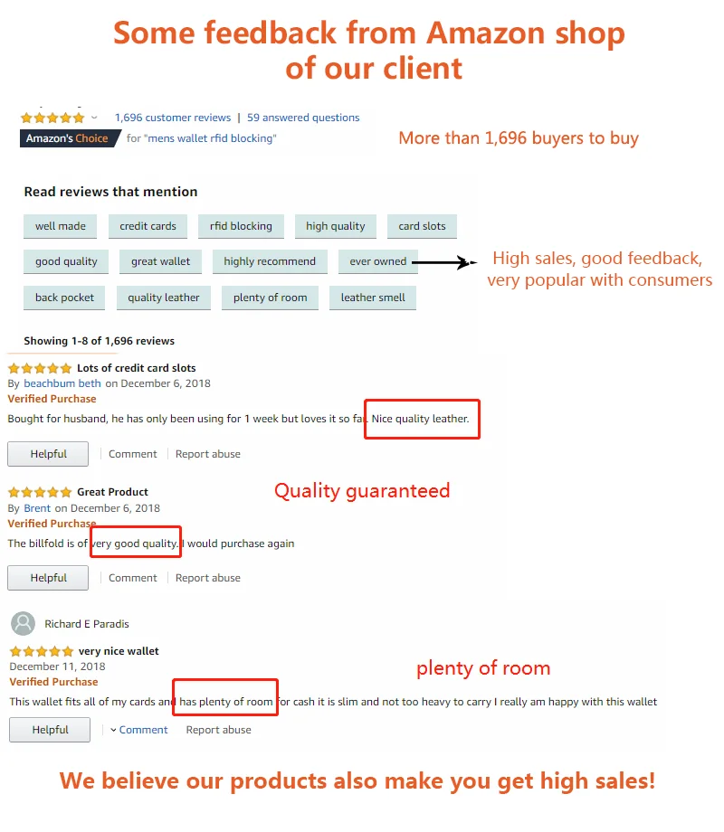 ♦More than 10 years' experiences in leather wallet field.