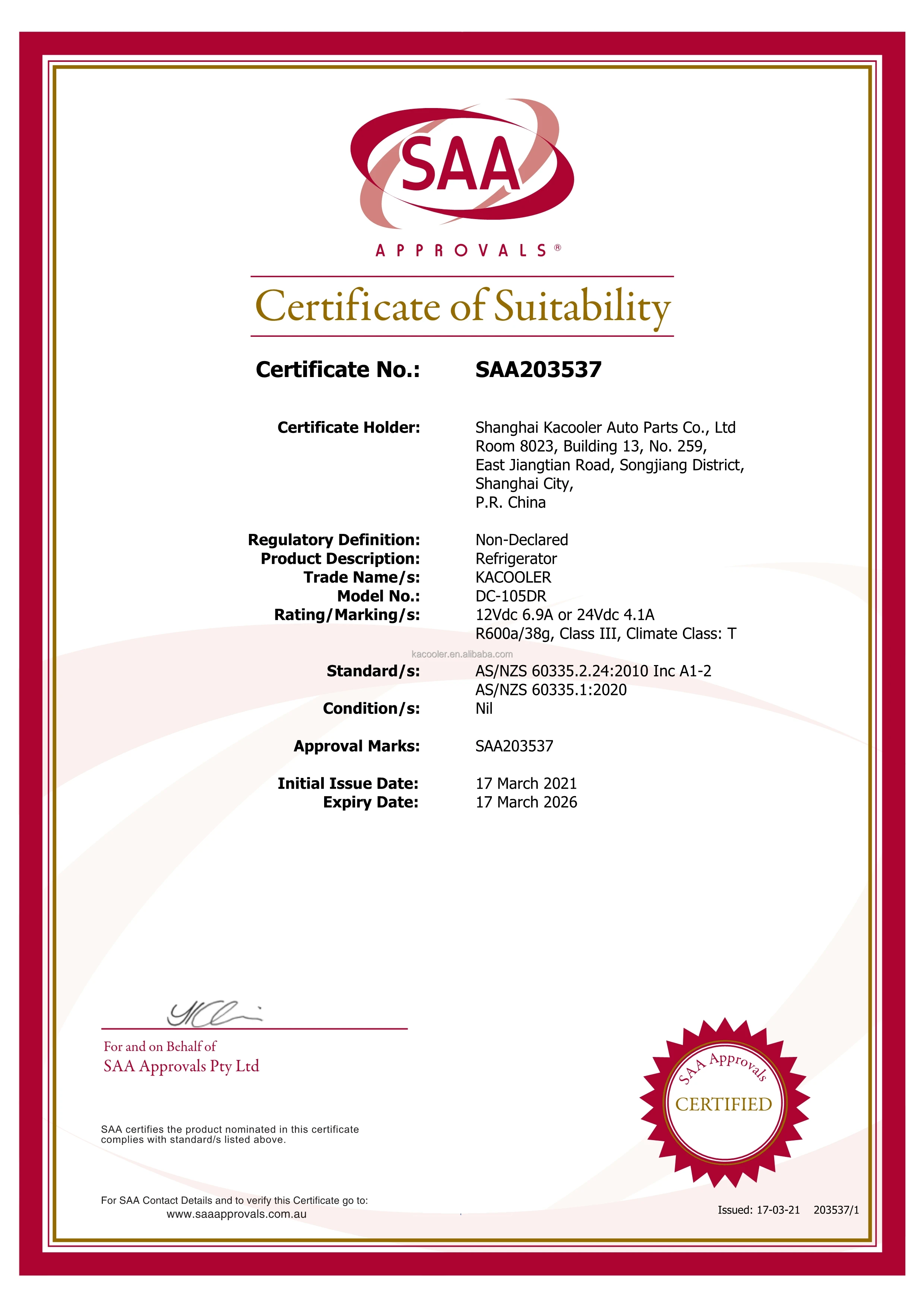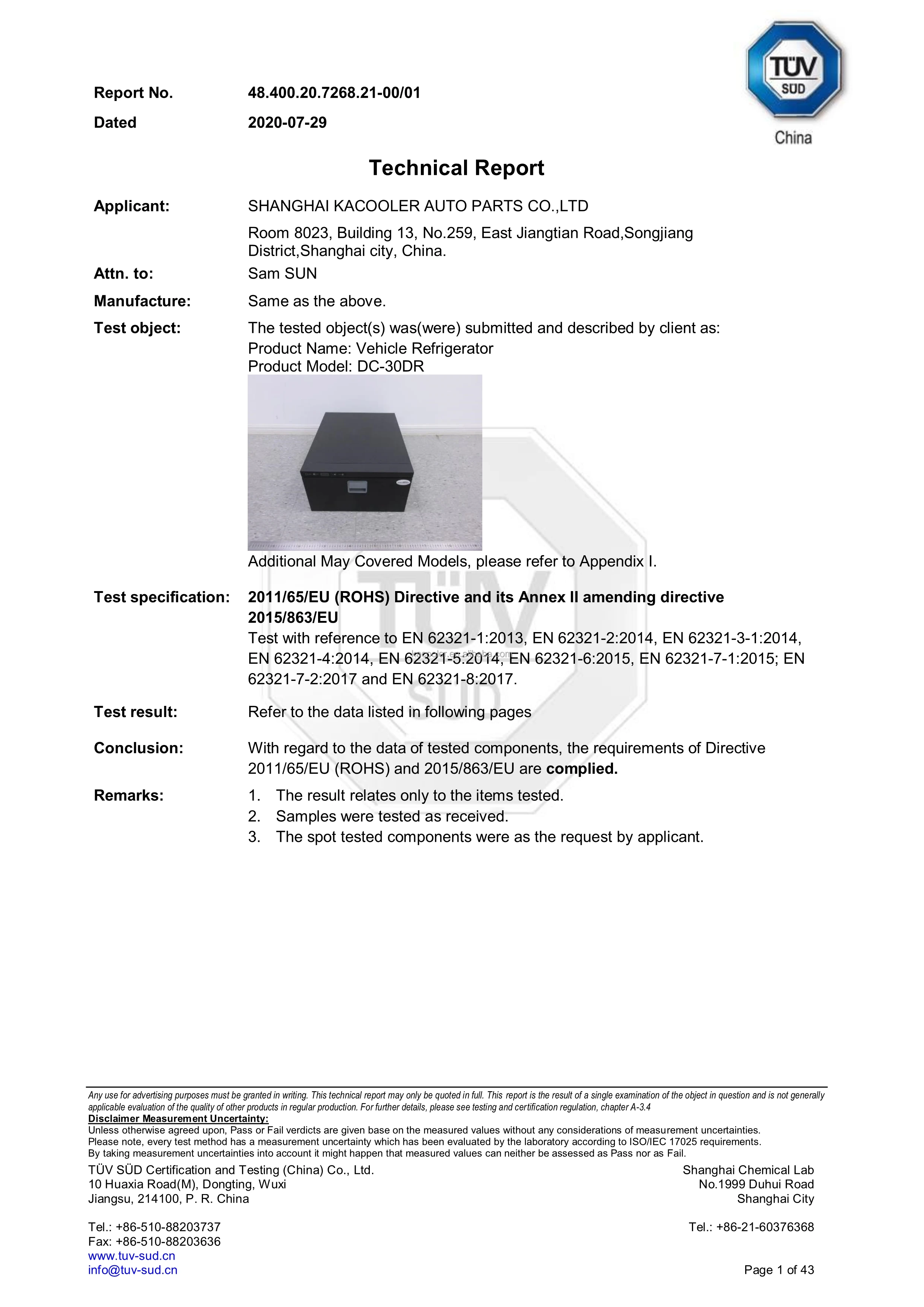 Kacooler DC Fridge Test and CE Certificates