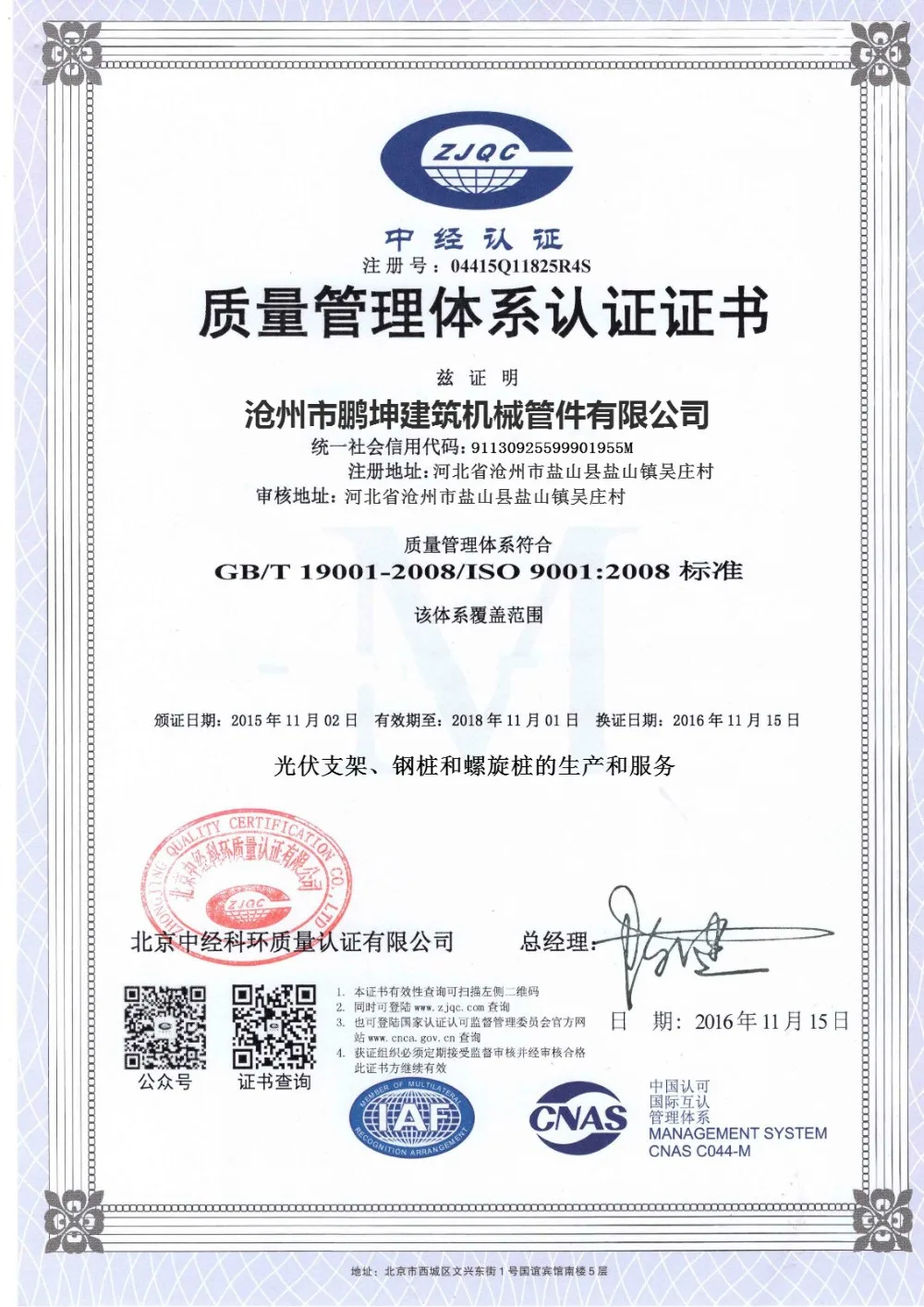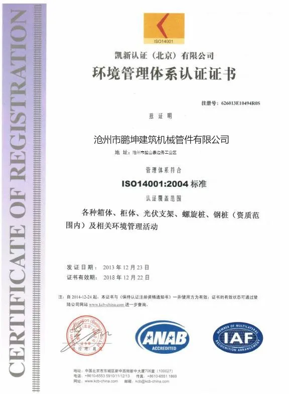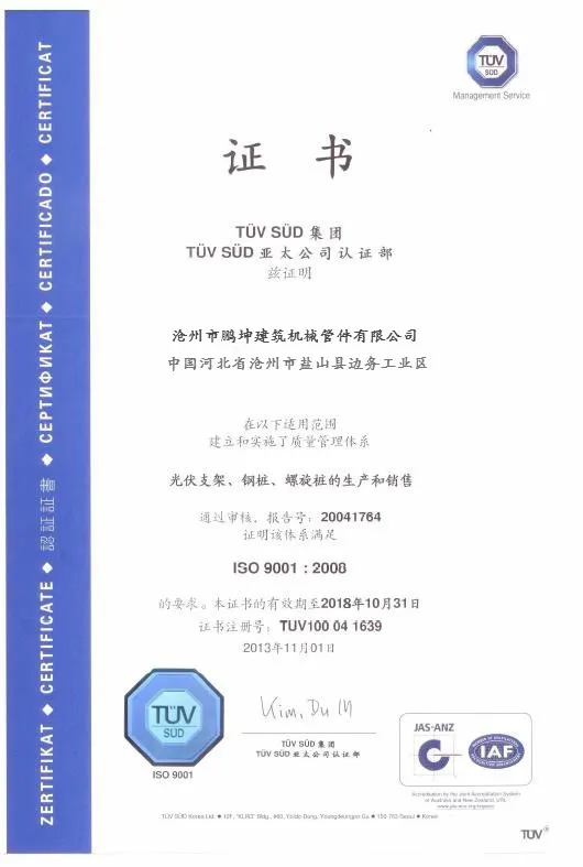 Наши земляной винт свай изготовлены из материалов первого качества (оцинкованный горячим погружением соответствует ISO 1461: 1999). Все наши поставщики (обязательной сертификации ISO 9001: 2000) осуществляет строгий контроль качества в заказ, чтобы получить лучшее качество исполнения в соответствии с требованиями наших внутренних процедур.