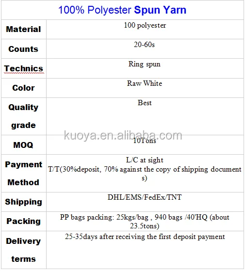 100% spun polyester yarn 40s/1 Virgin Close Virgin and Recycle quality