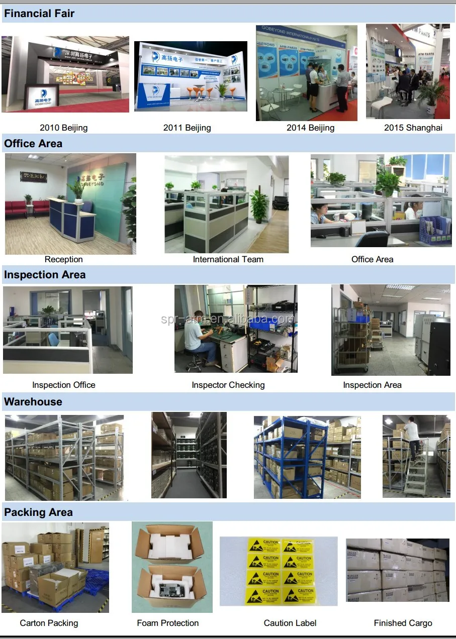 Gobeyond International (HongKong) LimitedЯвляется торговой, ремонтной и производственной компанией для банкоматов оборудования и частей NCR, Diebold и Wincor брендов и т. д. Мы имеем больше чем 15 лет опыта и уже установили эксклюзивные отношения со многими банками, финансового учреждения, банкомат, техническое обслуживание и ремонт компаний в китае. Наш главный офис находится в городе Шэньчжэнь, который является самым близким соседом Гонконга. Наш склад всегда поддерживает в наличии комплексное оборудование и запасные части для этих банкоматов.
