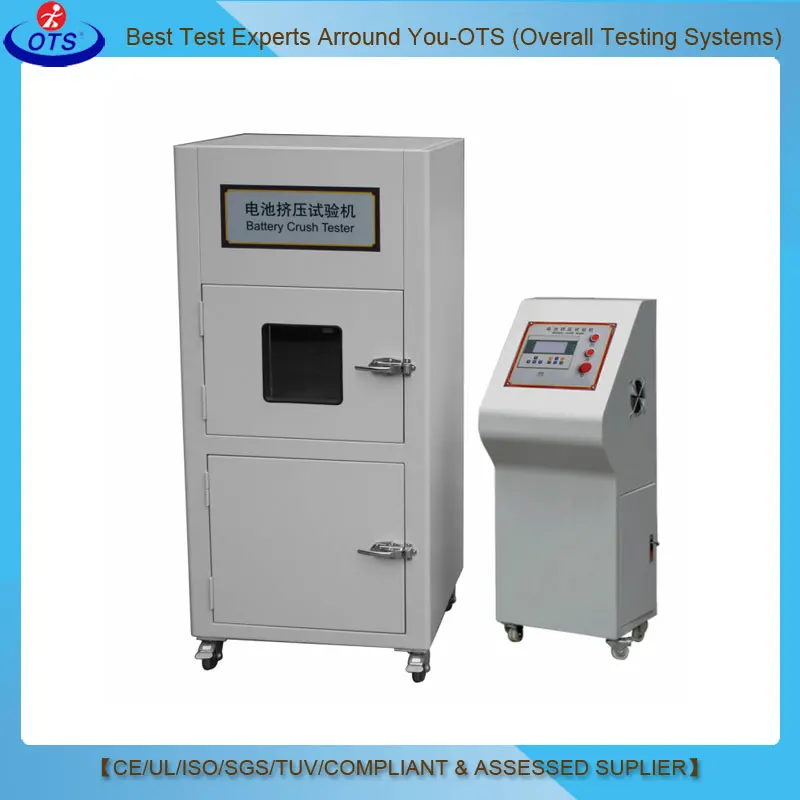 Силовая Трансмиссия режим | 1. Аккумулятор зажимается двумя плоскими пластинами экструзионного давления в трансмиссии гидравлического давления; 2. После того, как аккумулятор плотно зажат, давление начало сжимать до тех пор, пока число не было поднято до гидравлического цилиндра 2500 (17,2 МПа), давление между двумя пластинами составляет 3000 фунт (13 кН), резкое высвобождение давления; 3. Диаметр батареи параллельно пластине, квадратная батарея должна поворачиваться на 90 градусов, а затем сжимать. |