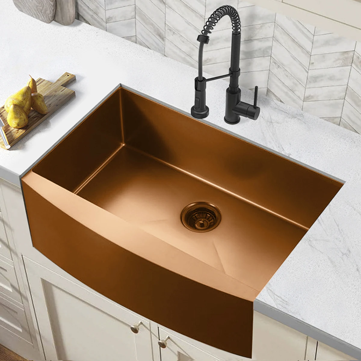 Hot Selling Rose Gold Color Single Bowl Farmhouse Stainless Steel Handmade Kitchen Sink 30