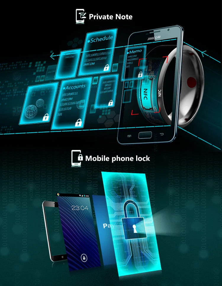 Save all kind of private information to this Smart Ring ,For example ,Schedule,Accounts,Memo etc. And set the Ring Touch action to be the only way of View or Edit.