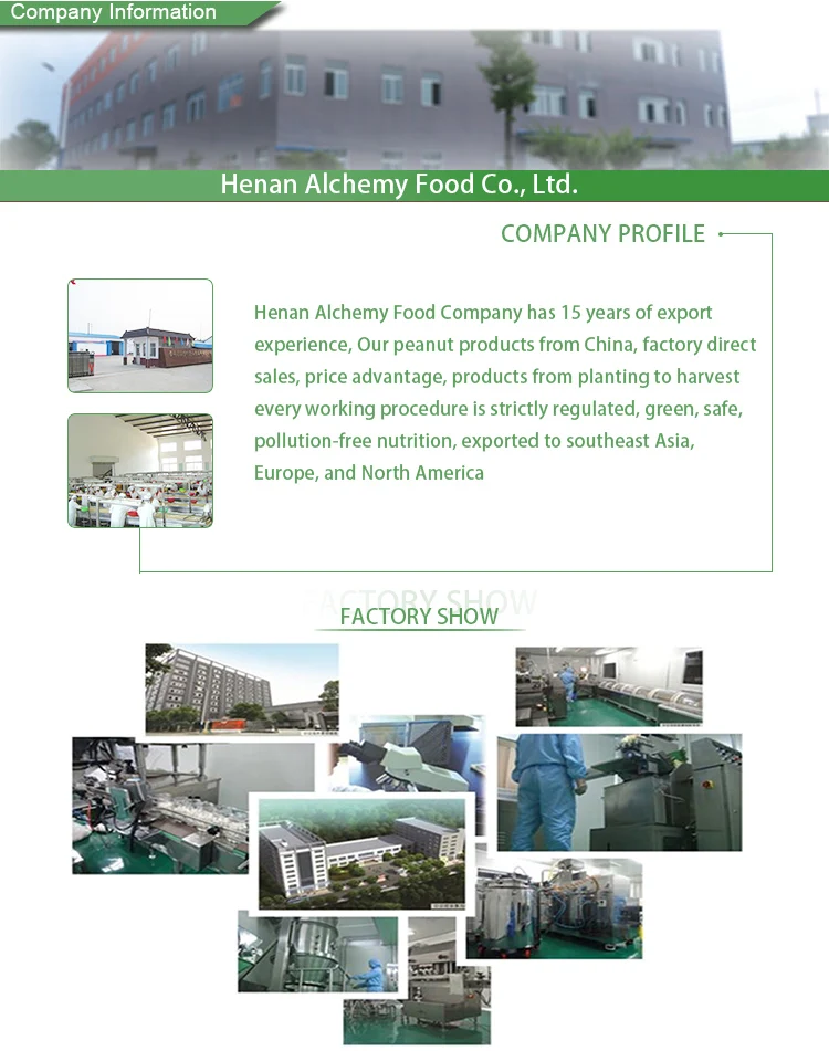 Мы Алхимия еды крупный поставщик в Китае, с более чем 15 лет опыта в экспорте продукции, строгий контроль качества, быстрая доставка, небольшой объем минимального заказа, очень разумной цене, экспортируется во многие страны ЕС, средний Восток, Азия, Океания, Америка.