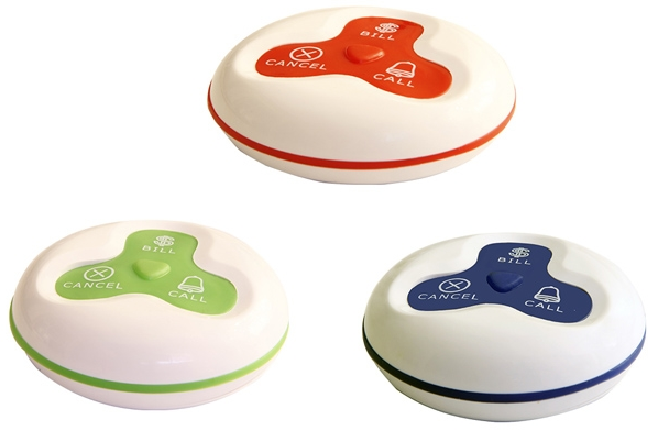 First, the calling buttons are pasted or put on the wall or on the table, when the guest have any service, he or she press the calling buttons, the receiver (LED screen or watch pager) will get signal with vibration or sound, showing the table number, then the waiter will know which table to be served.
