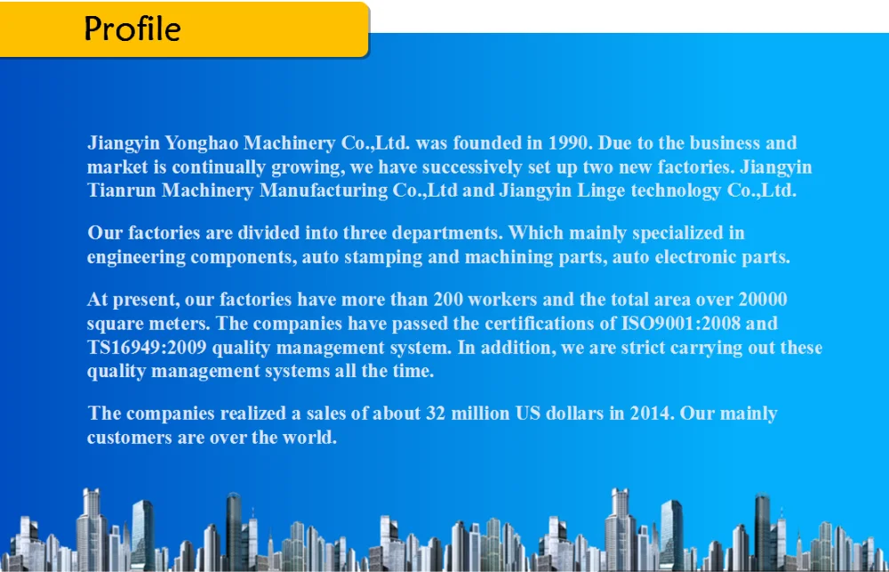 Сфера деятельности | Штамповка, лазерная резка, сверление, нарезание, обработка ЧПУ, Лазерная сварка, стыковая сварка, аргоновая дуговая сварка, токарный станок с ЧПУ, Обработка поверхности шлифовального станка, обработка цилиндрической шлифовальной машины, Обработка зеркальной полировки и т. д... |