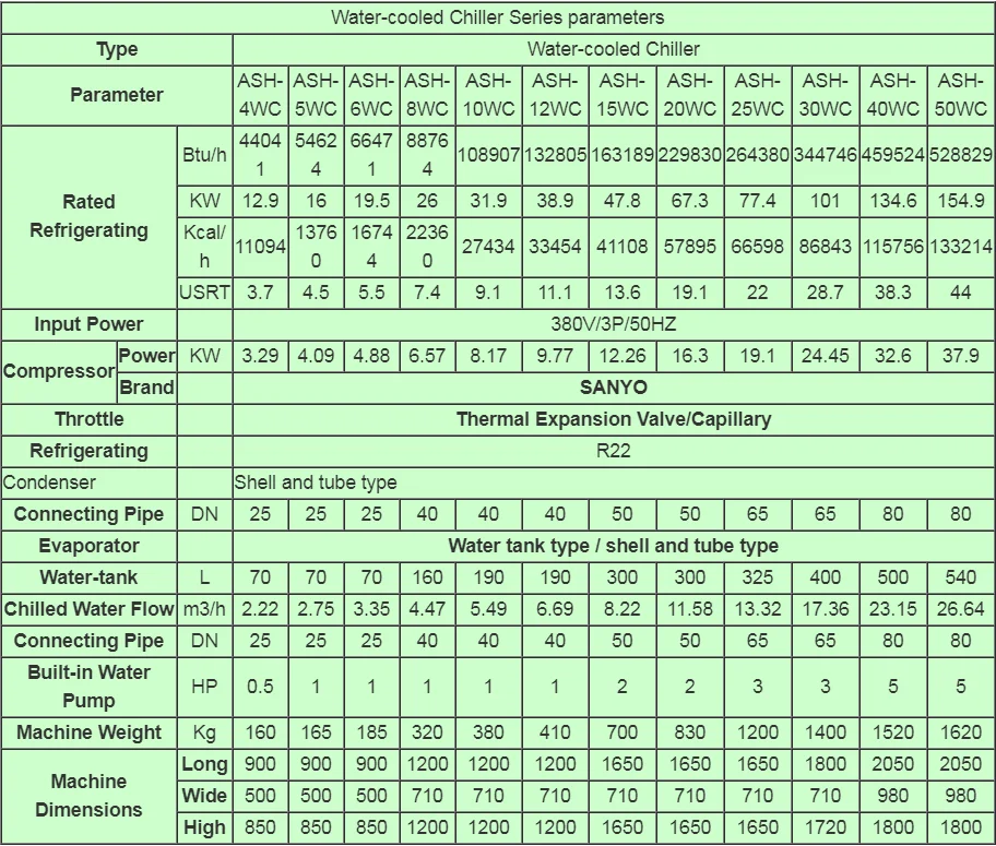 9. Агрегат, оснащенный воды циркуляционный насос и 304 SS водный бак в соответствии с Охлаждающая способность, нет необходимости устанавливать водонапорной башни, удобная установка и обслуживание.