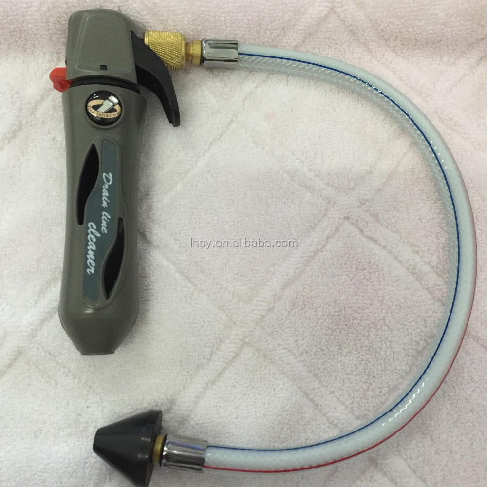 Простой в использовании сливной пистолет-просто разблокировать безопасность и нажмите для очистки воздуха Мощный СО2 воздух идет в сливные линии, чтобы очистить их мгновенно Гибкий шланг помогает изготовить через плотные области Использование CO2 для очистки сливных линий-без химических веществ или жидкости, и это экологично