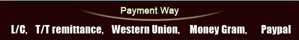 T/T : 30% deposit, the balance paid before shipment ( or balance against B/L copy )