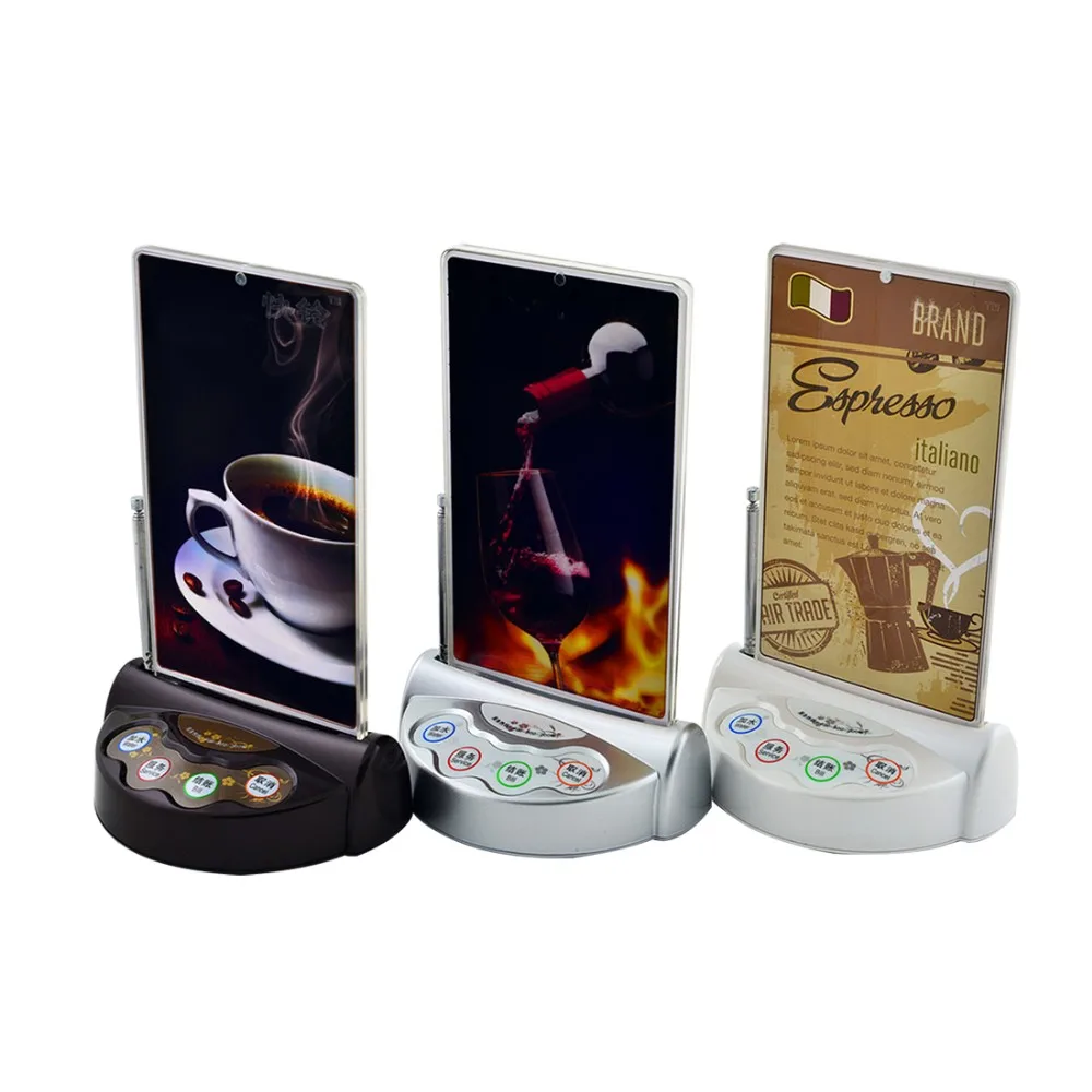Держатель Меню C200 | Размер: 120*72*40 мм Держатель карт: 155*90 мм Диапазон расстояния: 1000 м (Открытая Зона) Батарея: 12V23A Частота: 433,92 МГц Цвет: черный, белый, chocalate, серебристый Тип: четыре ключа (вода, обслуживание, счет и отмена) |
