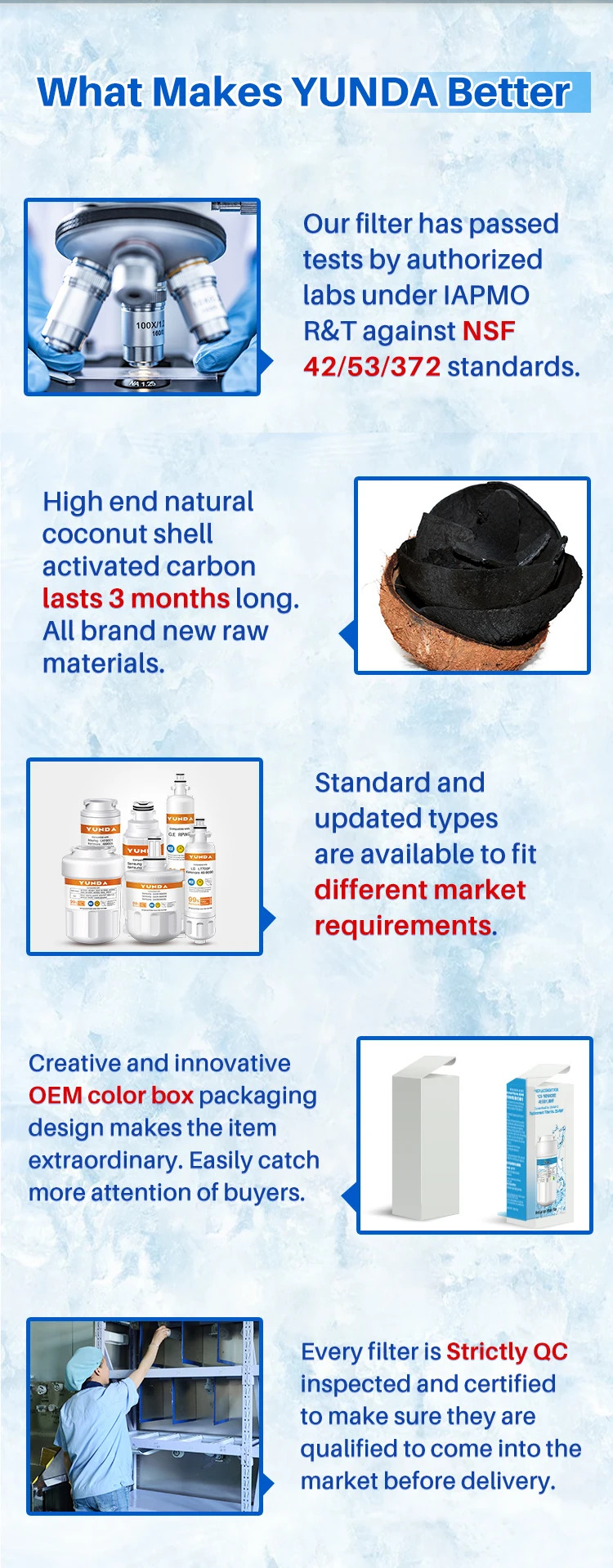 【Cost-Effective】YUNDA sells 600 million filters in America every year, and can provide you with the best filtration performance at a more reasonable price. |
