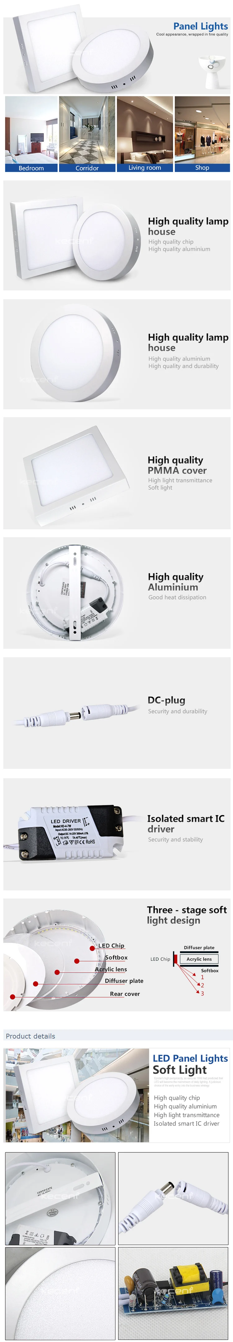 shenzhen price fast delivery etl super bright ip44 aluminum ceiling wall surface mounted 3w 18watt round led panel light