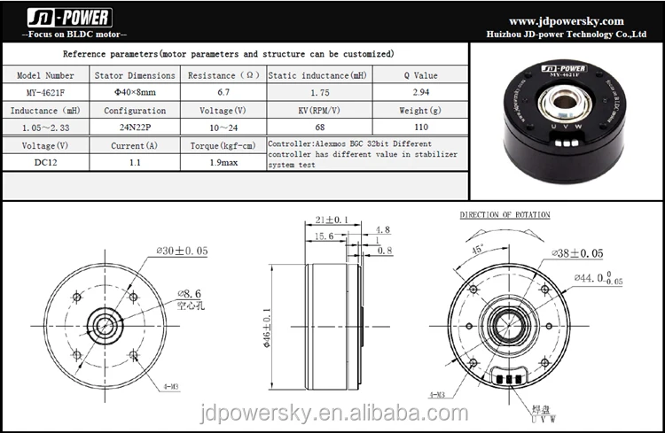 Huizhou JD-power Technology Co.,Ltd является производителем, специализирующимся на бесщеточном двигателе постоянного тока из Китая (gimbal, Дрон, промышленный БПЛА, электродвигатель и т. Д.).У нас есть богатый опыт и отличный инженер-проектировщик для настройки всех видов бесщеточного двигателя постоянного тока. Добро пожаловать на заказ, OEM/ODM доступны.
