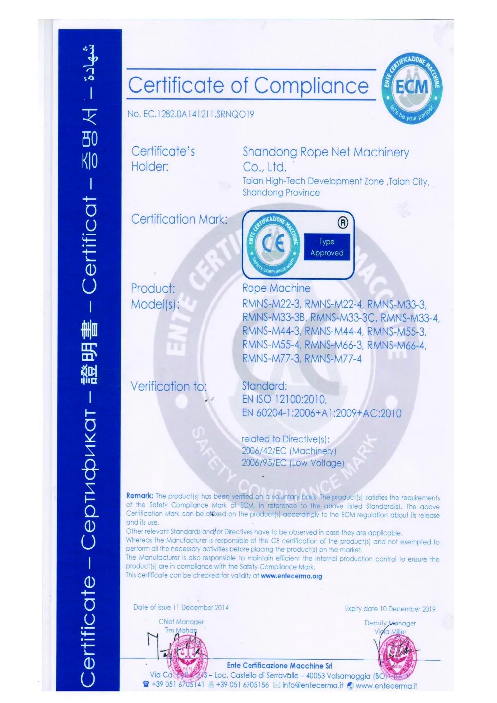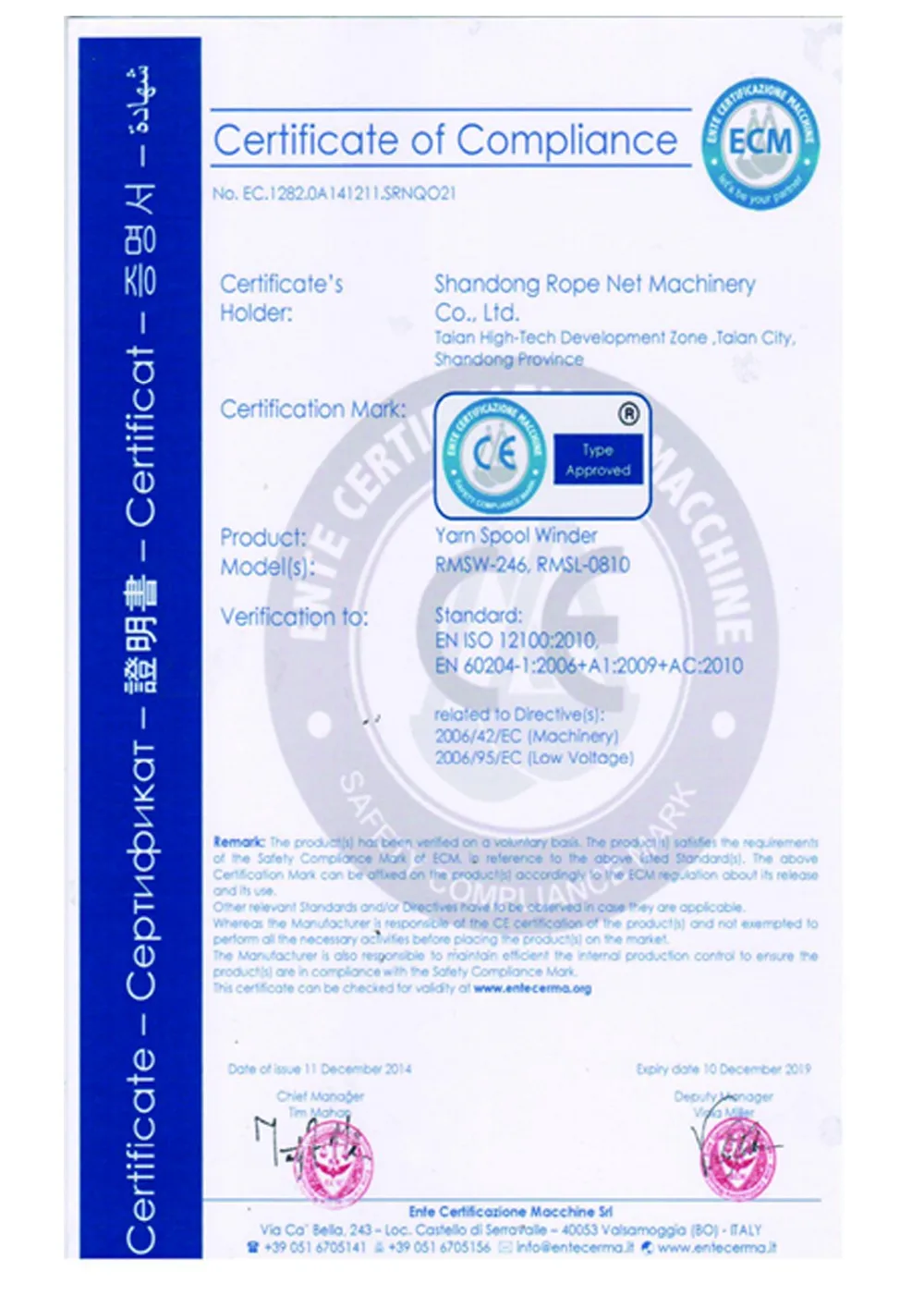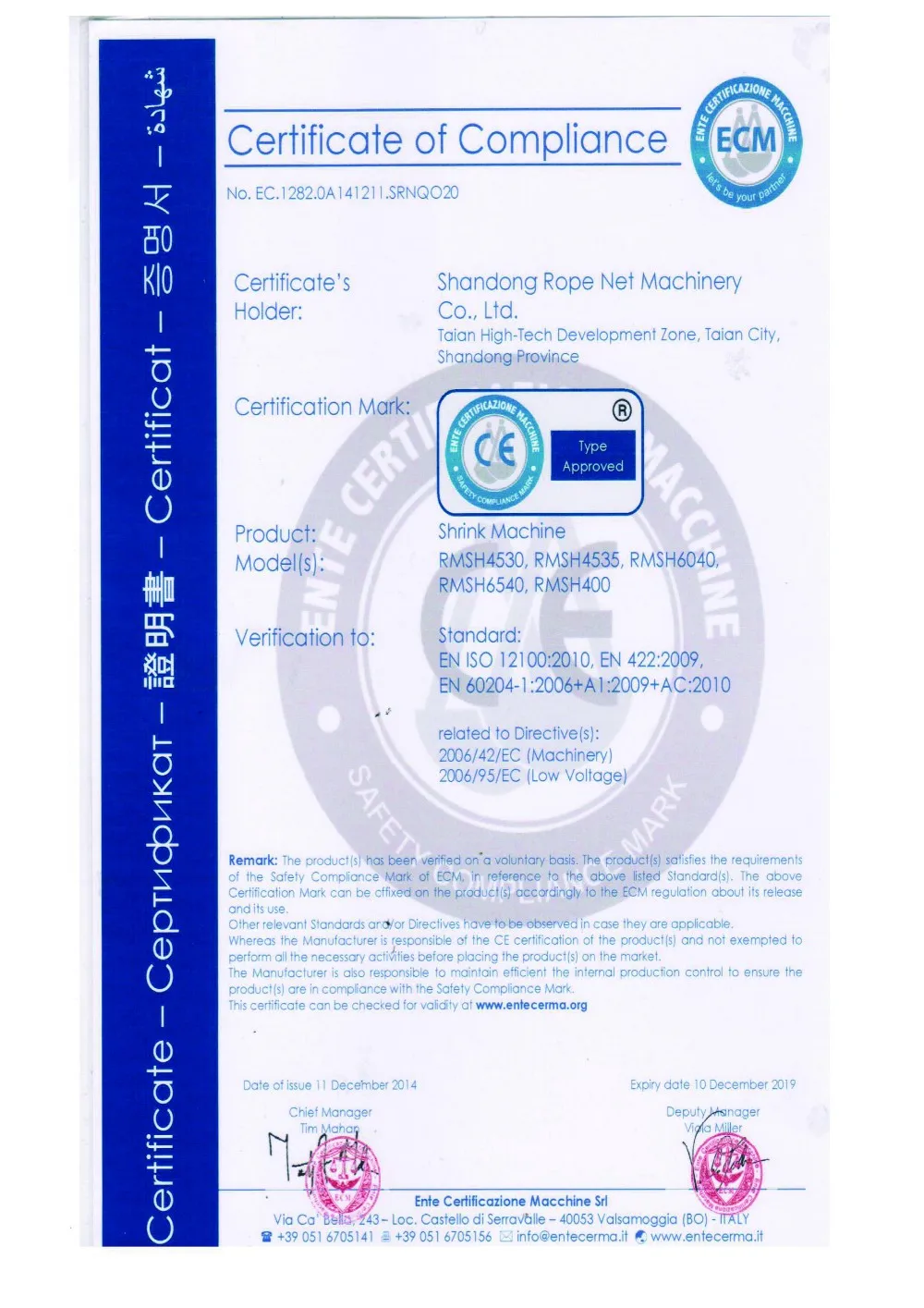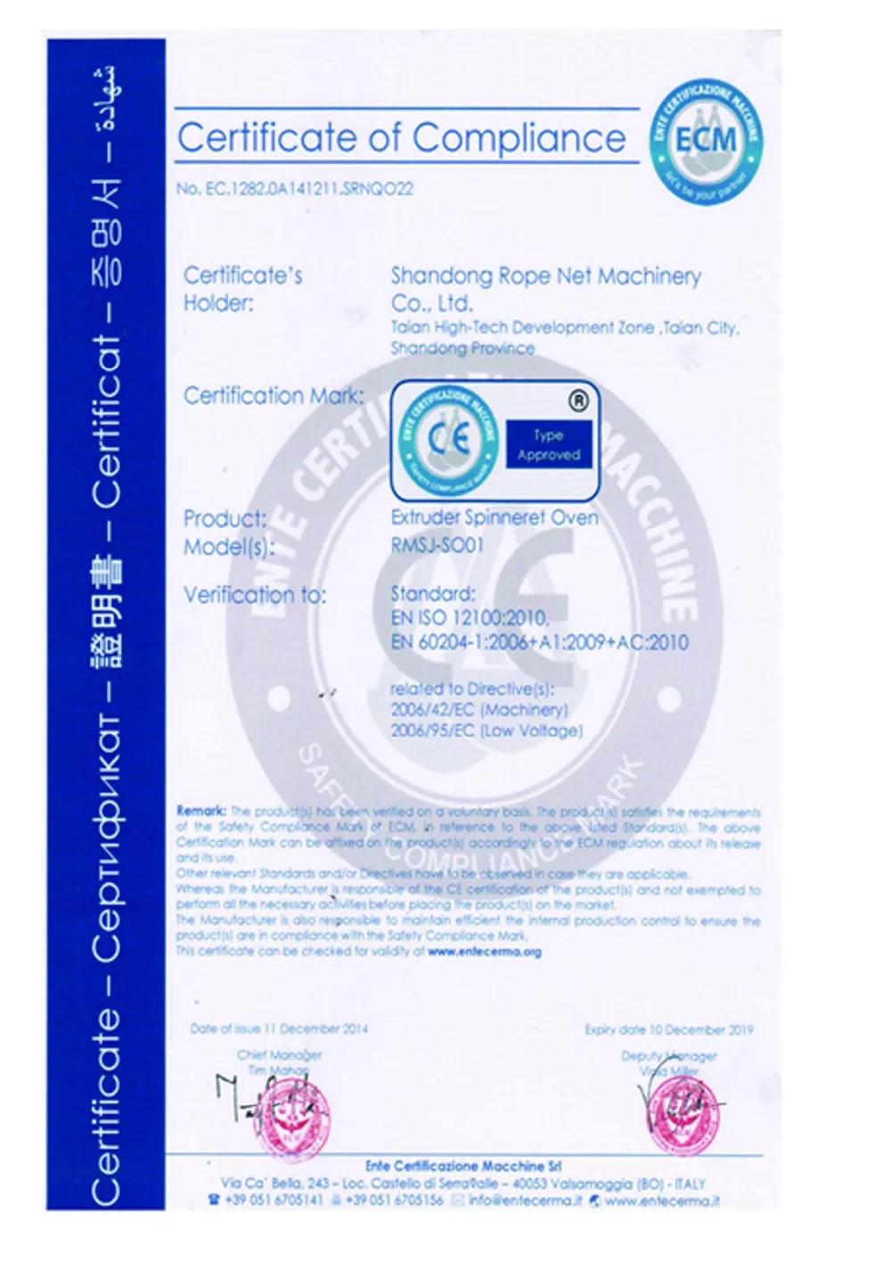 A: Our machines can be delivered with CE certificate