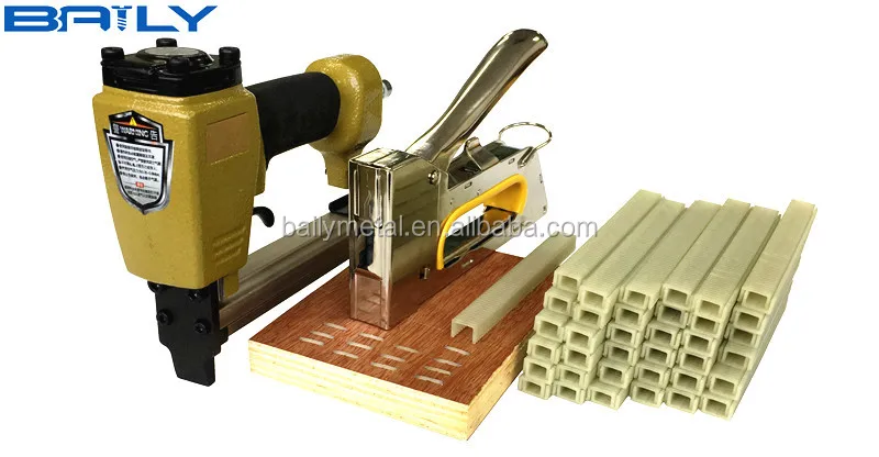 Pnuematic gun staples are widely used in Tags, boat, furniture, lattice, window, door casing, paneling, decking, book cases, drawers, cabinets, planters, window trim, flower boxes and etc..