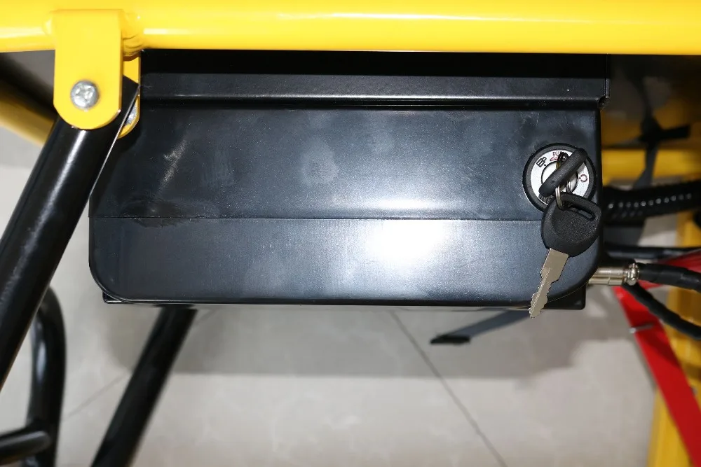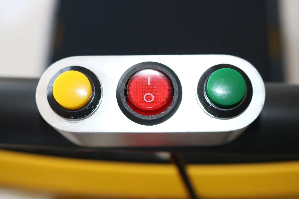 The green button is for up stairs,the yellow button is for down stairs and the middle button is for emergency situation,when put the middle button the electric stair climber will stop on the stairs ,very safe