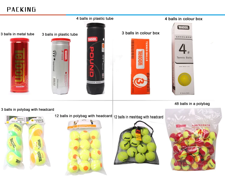 7. качество продукции: Teloon специализируется на производстве теннисных мячей более 30 лет, и наши 7 видов теннисных мячей получили одобрение ITF.