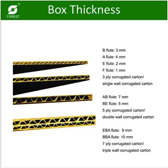 1.Box Material- Corrugated Board F flute 0.9mm; E flute 1.6mm; B flute 2.8mm; C flute 3.8mm;
