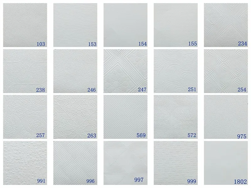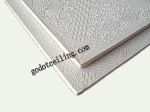 VC Gypsum Ceiling Tileare in fact smaller sized gypsum panels faced with PVC of various colors and designs. The base board of gypsum ceiling tiles is standard gypsum board. Usually with aluminum foil on the back, gypsum ceiling are normally laminated with PVC on the face, which gives rich options of colors and designs for the users. Similar to gypsum board, both quared edge and tapered edge are available.Wide application in different places and buildings, our gypsum ceiling tiles are water-proof,corrosion-resistant and fire-proof, So they are used for decoration in even almost all kinds of places, such as hotel, hospital, shcool, house, shopping mall, meeting hall. theater, etc.