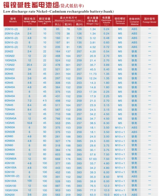 Industrial battery Alkaline battery series is equipped with a regulated valve to keep its pressure in a suitable limit, it also prevents the electrolyte from absorbing the CO2 in the air. This ensures the battery not need to replace the electrolyte during the operation. The battery is characterized with long life, strong construction, low self-discharge, wide operating temperatures , high reliabilities and resistance to over change and discharge. The batterys maintenance interval may be 1-4 years at the various float charge voltages.