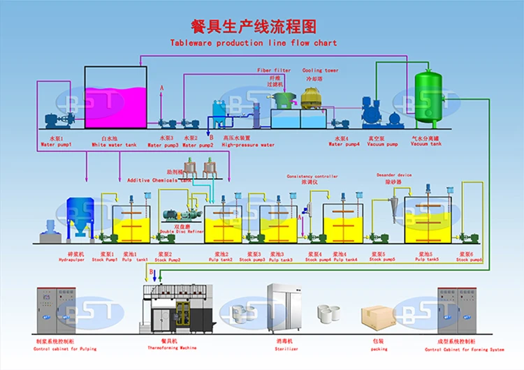 BST Semi-automatic, full-automatic, automatic, pulp molding machine, pulp molding production line, pulp molded machine for table ware, catering ware, paper plate, pulp molded plate, paper bowl, pulp molded bowl, food containers, cup holders, saucers, food containers, high efficiency, energy-saving, with CE certified.