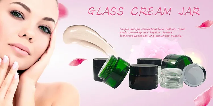 Детали стеклянной банки зеленого крема.