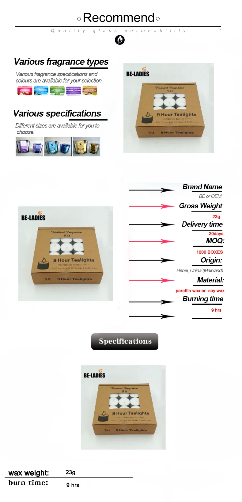 3.Main products is scented glass candle, tin candles, pillar candles, Church candles, taper dinner candles, tealights and other customized candles.