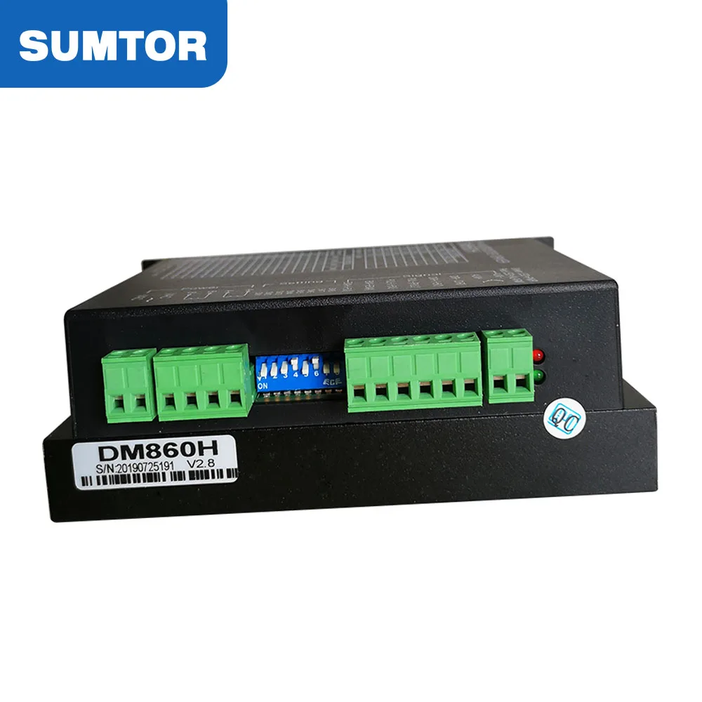 DM860H is digital 2 phase stepper driver and adopts the latest 32 DSP to control. It has subdivision and current dial in the external of the driver. Users can free set according to requirements. External DSP writing advanced drive control algorithm, can guarantee the stepper motor in various speed section of precise and stable operation, among them, the built-in segmentation algorithm, can make the motor at low speed when running smoothly; The high speed torque compensation algorithm can maximize the torque of the motor at high speed. The parameter self-tuning algorithm can adapt to various motors and maximize the performance of the motor. The built-in smoothing algorithm can greatly improve the motor acceleration and deceleration performance. In short, this digital drive can meet the application of most applications and is a highly cost-effective motion control product.