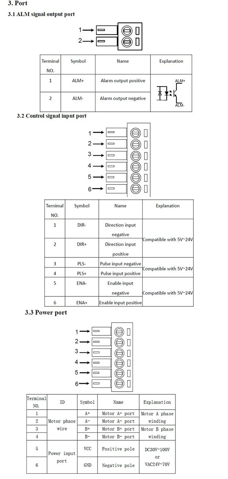 Protection | 1. Overcurrent action value Peak12A±10% 2. Overvoltage action value 130VDC 3. Undervoltage action value 20VDC | |||||||