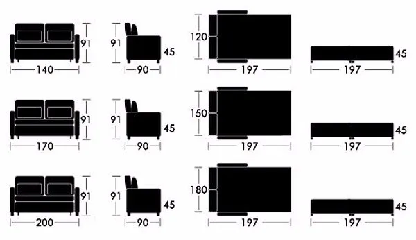 Dimension | Sofa Size: 200x90x91cm. Bed Size: 195x180x45cm, king size bed. There are three sizes for choosing, as shown below | |