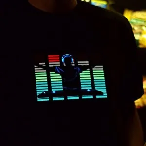 Это мигающая футболка, о котором все говорят-звуковой Активированный эквалайзер с регулируемым чувствительным инвертором, который очень популярен для танцевальной вечерние, Рождества или любых других фестивалей. когда вы входите в дискотеку, бар или ночной клуб с этой футболкой, El панель будет прыгать вверх и вниз с любым звуком или музыкой в режиме реального времени! Это действительно довольно круто! Вы будете особенным!