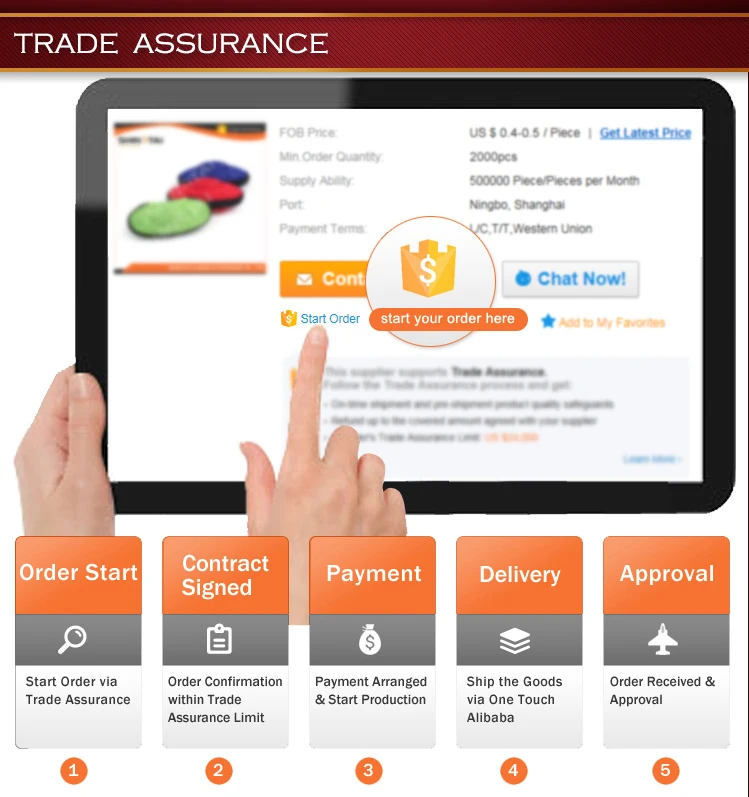 После подписания вашего контракта, депозит должен быть оплачен, и наш образец будет отправлен вам для проверки. Как только образец будет подтвержден, продукция будет вскоре организована. Когда ваши товары будут готовы, баланс должен быть очищен, а затем упаковка и отправка будут организованы как можно скорее.