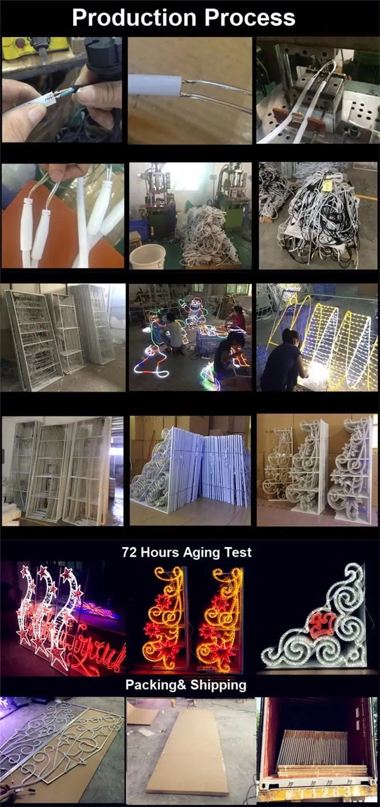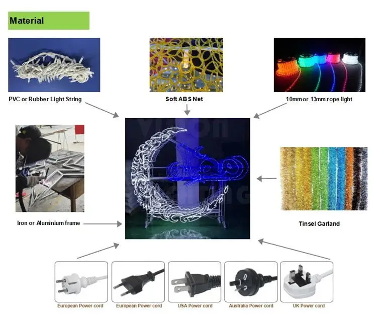 Material | led rope light, led string lights, iron/aluminum frame |